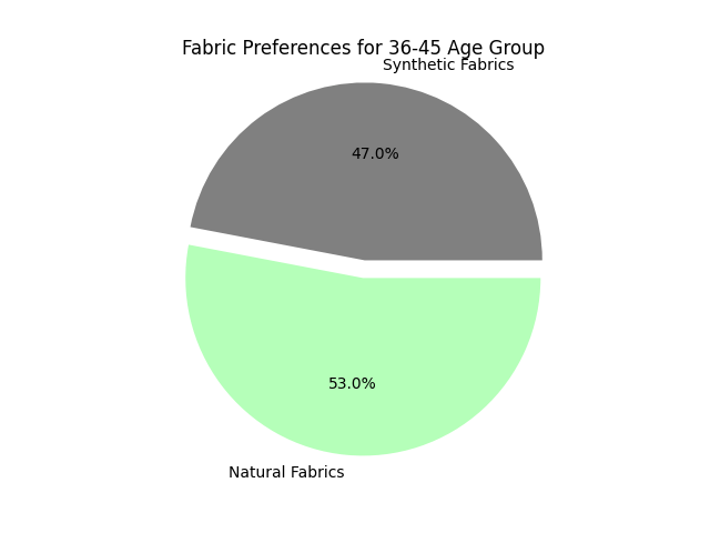 • The 36-45 age group showed a balanced interest in both natural and synthetic fabrics, with 47% valuing the durability of synthetics and 53% opting for natural fabrics for their eco-friendliness.