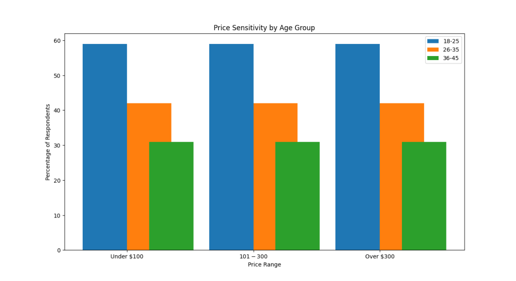 • The 18-25 age group showed the highest price sensitivity, with 59% indicating they would not exceed $100 for a single garment.