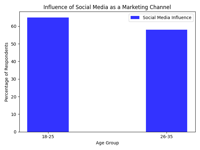 • Social media was identified as the most influential marketing channel, with 65% of the 18-25 age group and 58% of the 26-35 age group citing it as their primary source of brand discovery.